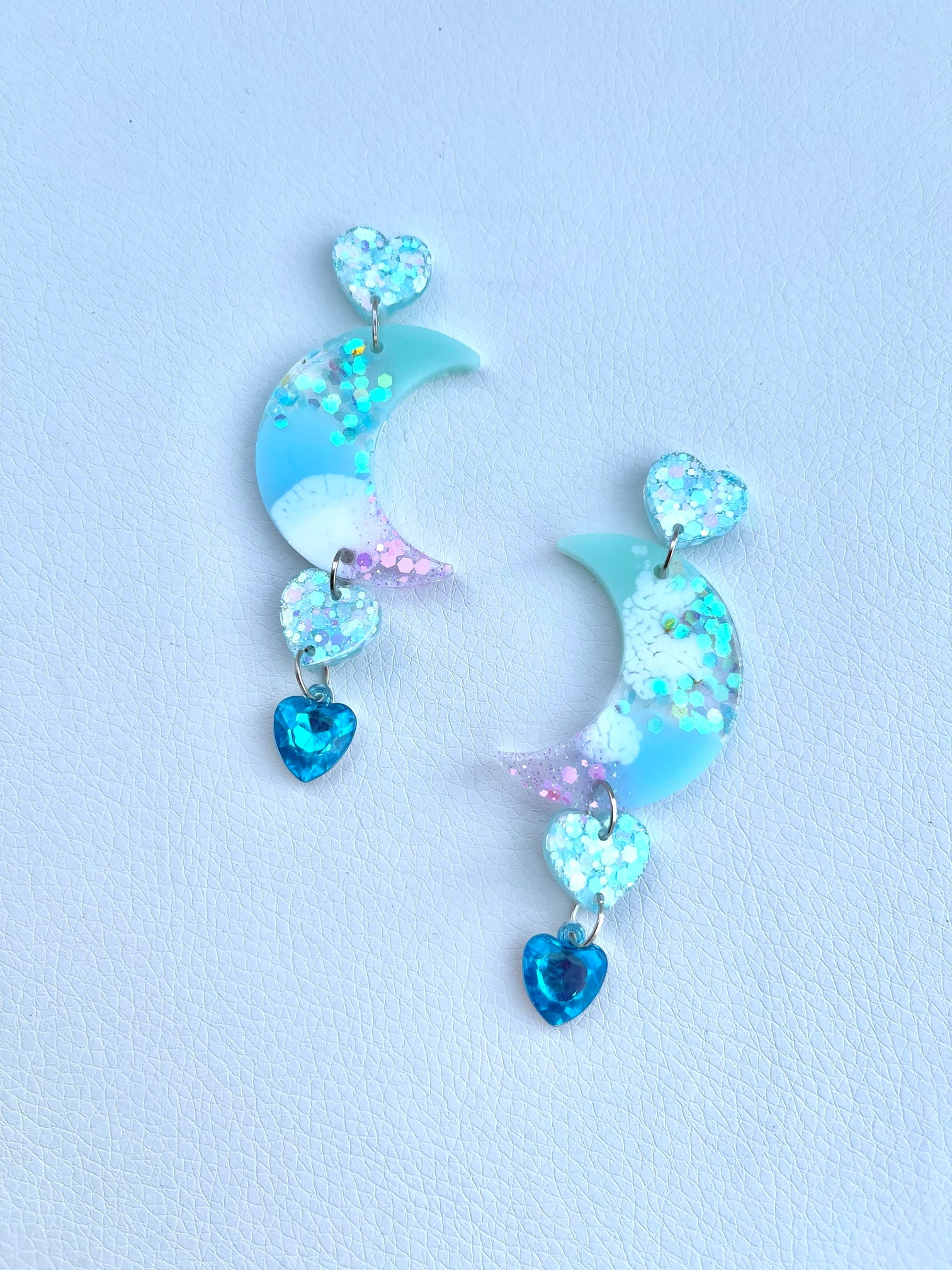 Celestial lagoon dangles are handmade from resin and come with surgical steel posts.