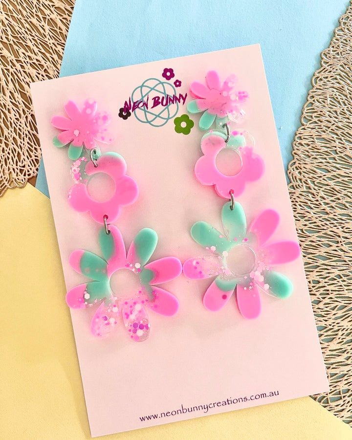 Minty daisy statement dangles! Made from resin with surgical steel backings, there are two shades to choose from.