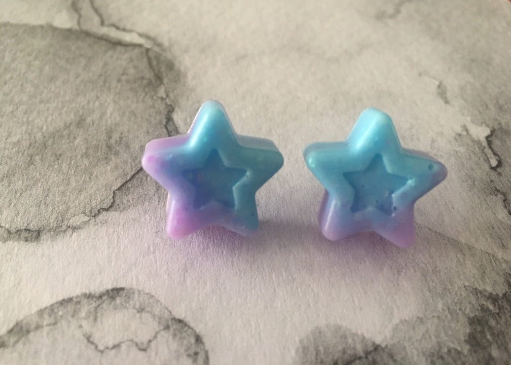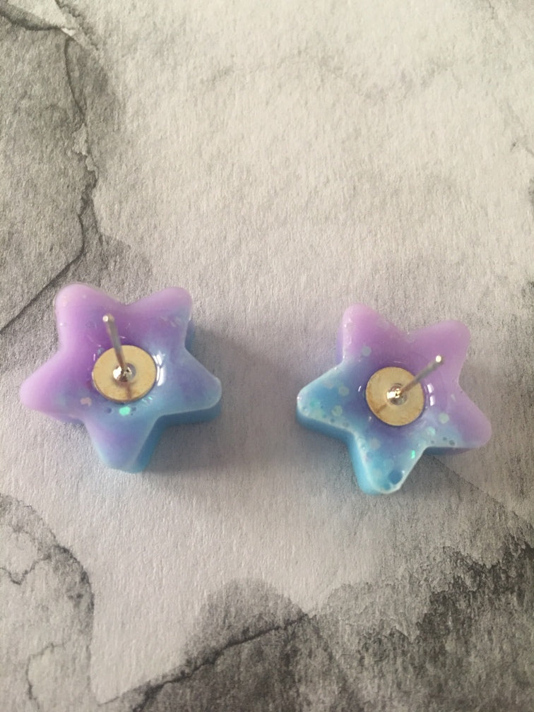 Cute ombre studs made from glitter in a purple/blue hue.