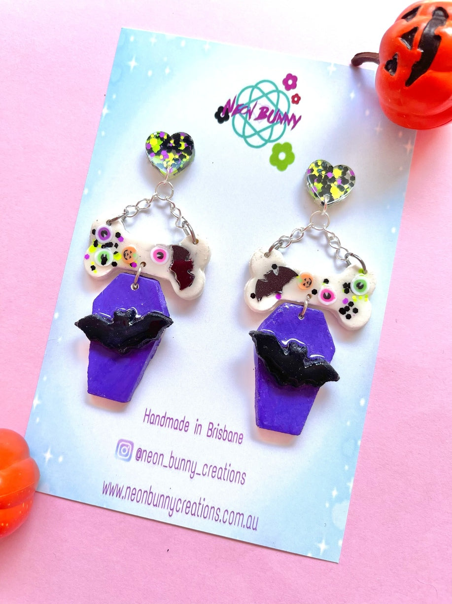 Handmade from clay and resin with surgical steel studs! All earrings are safe for sensitive ears.