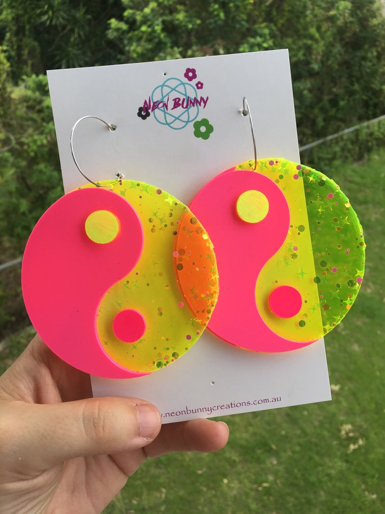 Jumbo pink and yellow yin yang earrings