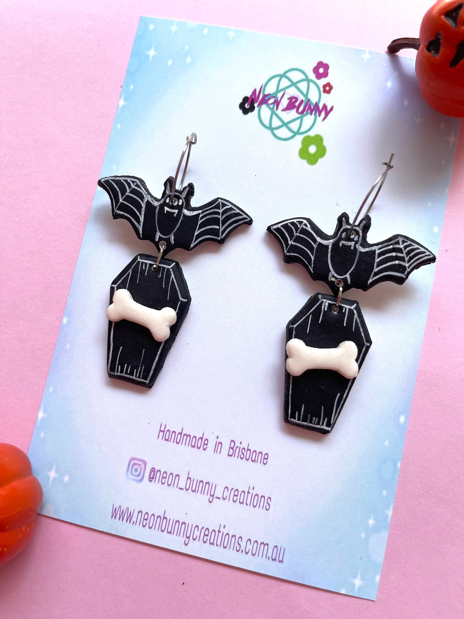 Spooky bat coffin earrings